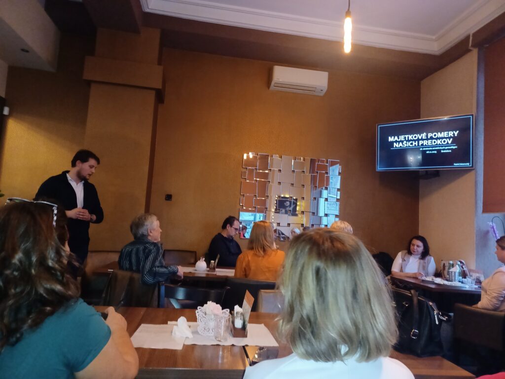 Druhou prednáškou dnes bola prednáška nášho kolegu MUDr. Patrika Zakarovského, MPH na tému „Majetkové pomery našich predkov“. Patrik nám priblížil svoje poznatky z bádania v urbároch, pozemkových knihách a ďalším materiáloch, ktoré sú k dispozícii či už v archívoch, alebo Úradu geodézie, kartografie a katastra SR.